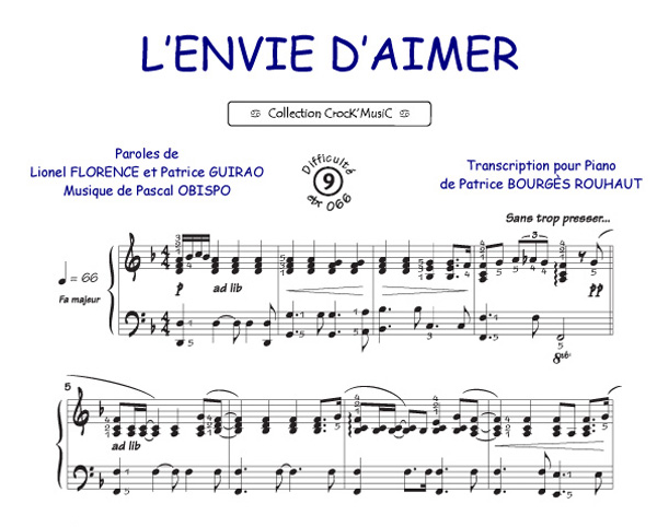 Descriptif : Cette partition est issue de la collection CrocK'MusiC constituée de transcriptions de chansons françaises pour le Piano, acompagnées de leurs paroles.