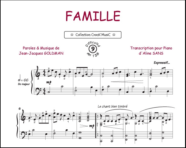 Descriptif : Cette partition est issue de la collection CrocK'MusiC constituée de transcriptions de chansons françaises pour le Piano, acompagnées de leurs paroles.