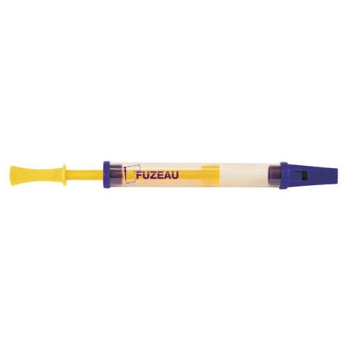 Descriptif : Flûte à coulisse en plastique transparent.' ' La flûte à coulisse est la version enfantine du trombone à coulisse. Instrument à vent très ludique, il fait partie des incontournables de l'instrumentarium de la petite enfance !' Ce qui fait le charme et l'originalité de ce petit instrument, c'est sa coulisse, qui permet de diminuer et d'augmenter la colonne d'air présente à l'intérieur du corps de l'instrument, et ainsi de jouer sur la sonorité produite : moins il y a d'air dans ce conduit (coulisse rentrée), et plus la note est aigüe; plus il y a d'air (coulisse sortie), et plus on atteint un registre grave. D'où ce son évolutif et rigolo très utilisé dans les bruitages de cartoons !' ' ' Une fiche accompagne cet instrument. Elle propose des activités faciles et variées avec pour la plupart des extraits sonores à écouter ici.' ø 2,2 cm - L. 26 cm fermée.