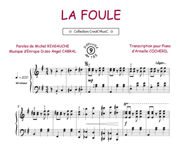 Descriptif : Cette partition est issue de la collection CrocK'MusiC constituée de transcriptions de chansons françaises pour le Piano, acompagnées de leurs paroles.