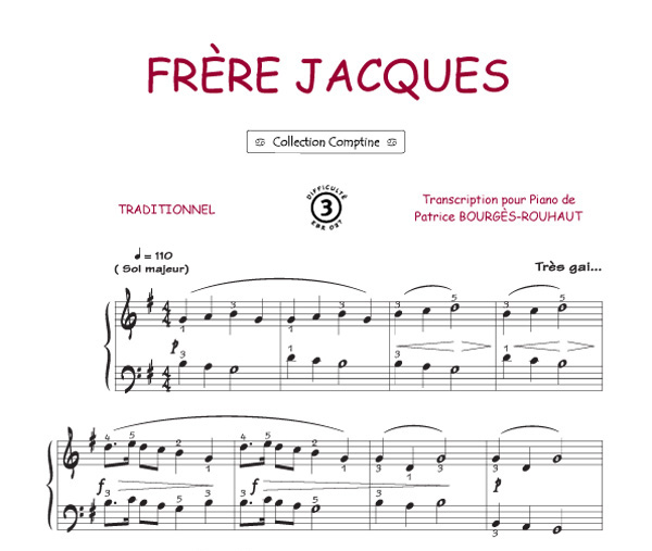 La collection Comptine est constituée de transcriptions de chanson enfantines et traditionnelles pour le Piano, acompagnées de leurs paroles.