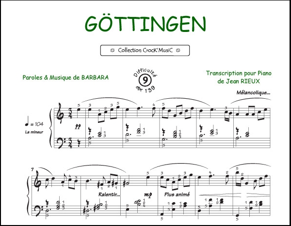 Descriptif : Cette partition est issue de la collection CrocK'MusiC constituée de transcriptions de chansons françaises pour le Piano, acompagnées de leurs paroles.