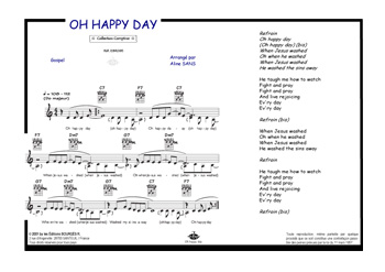 Descriptif : Chaque feuillet propose une partition piano isolée avec doigtés et nuances, et une partition sous forme de grille contenant la partie chant, paroles, accords, tablatures guitare.
