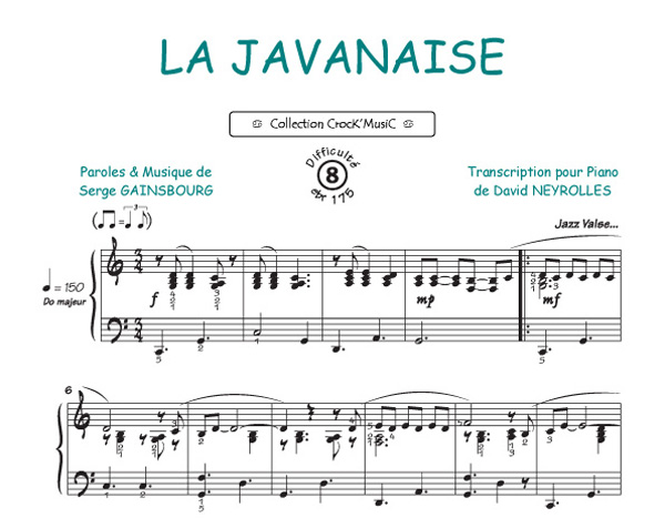 Descriptif : Cette partition est issue de la collection CrocK'MusiC constituée de transcriptions de chansons françaises pour le Piano, acompagnées de leurs paroles.