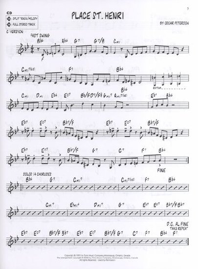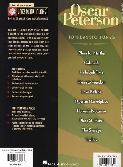 Descriptif : Outils pédagogique pour tous les jazzmen. Séléction de 10 classiques d'Oscar Peterson arrangés pour les instruments en Bb, Eb et C. Les parties piano et basse sont détachables. Sur le CD vous trouverez deux versions de chaque thème : une avec tous les instruments et une autre sans la partie solo.