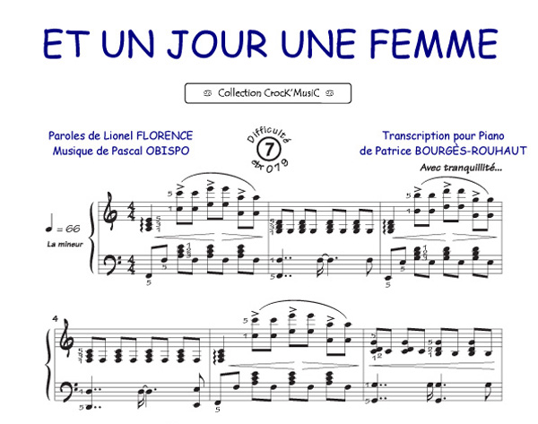 Descriptif : Cette partition est issue de la collection CrocK'MusiC constituée de transcriptions de chansons françaises pour le Piano, acompagnées de leurs paroles.