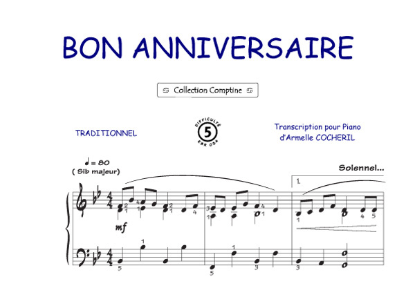 Ces partitions, proposées au feuillet, sont réalisées par une équipe pédagogique regroupant plusieurs professeurs de piano. Elles sont graduées en niveaux de difficulté (de 1 à 9) pouvant satisfaire débutants et confirmés