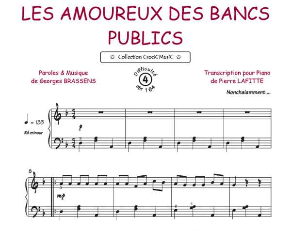 Descriptif : Cette partition est issue de la collection CrocK'MusiC constituée de transcriptions de chansons françaises pour le Piano, acompagnées de leurs paroles.