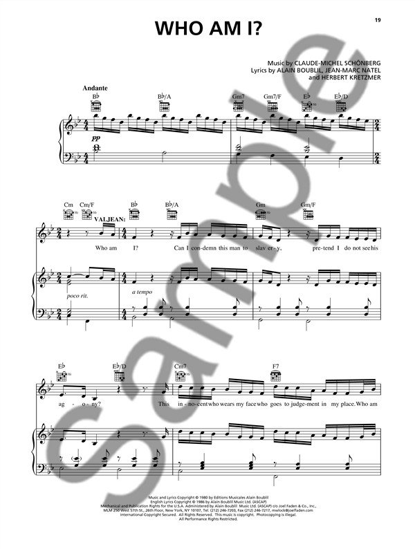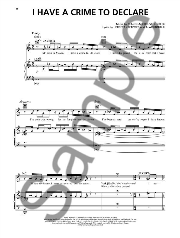 Descriptif : Un recueil de partitions comprenant une sélection de 16 titres extraits de la bande originale de la comédie musicale Les Misérables par Alain Boublil/Claude-Michel Schönberg et de son adaptation en film. '' '' Il comprend notamment une section `Gavroche` directement issue de spectacle original français de 1980 et une chanson toute nouvelle, spécialement composée pour Jean Valjean - Hugh Jackman pour la scène où il découvre la force de ses sentiments paternels pour Cosette.
