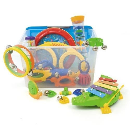 Descriptif : Cet ensemble vous permettra de créer des séances d'activités musicales où chaque enfant choisira son instrument : couleurs et rythmes animeront la classe.' ' Un panaché d'instruments à secouer, à gratter, à frapper... pour découvrir le monde des petites percussions.' ' Norme CE' * couleurs non contractuelles' ' L. 38,5 cm - P. 28 cm - H. 24 cm