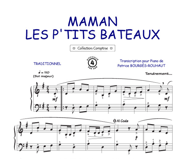 La collection Comptine est constituée de transcriptions de chanson enfantines et traditionnelles pour le Piano, acompagnées de leurs paroles.