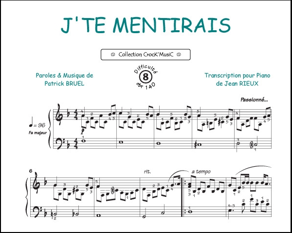 Descriptif : Cette partition est issue de la collection CrocK'MusiC constituée de transcriptions de chansons françaises pour le Piano, acompagnées de leurs paroles.