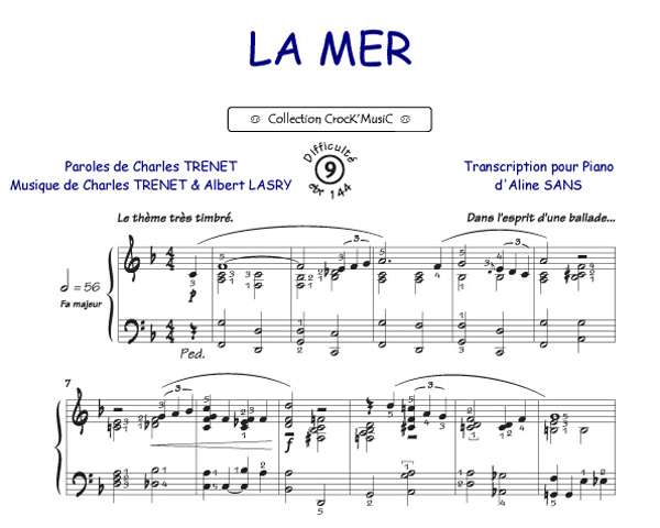 Descriptif : Cette partition est issue de la collection CrocK'MusiC constituée de transcriptions de chansons françaises pour le Piano, acompagnées de leurs paroles.