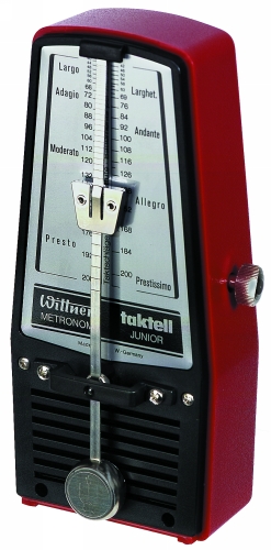 Descriptif : Le métronome Wittner Junior est certainement le plus populaire des Métronomes, en particulier chez le Pianiste. Il offre une audition claire du battement, entièrement mécanique, ce métronome utilise le même système de balancier que les autres modèles de la gamme. Fabriqué en Matière Plastique très Résistante. Ajustable de 40 à 208 battements par minute. Couleur Rubis.