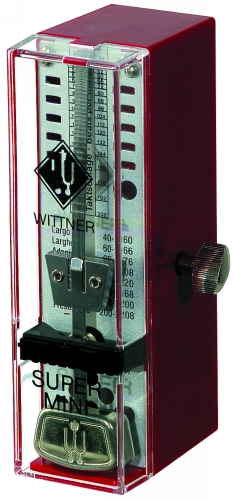 Descriptif : Le métronome Wittner Super-Mini se glissera partout, dans votre sac, dans votre housse instrumentale ou dans votre poche...Bien que Mini, Il offre une audition claire du battement, entièrement mécanique, ce métronome utilise le même système de balancier que les autres modèles de la gamme. Fabriqué en Matière Plastique très Résistante. Ajustable de 40 à 208 battements par minute. Couleur Rubis.