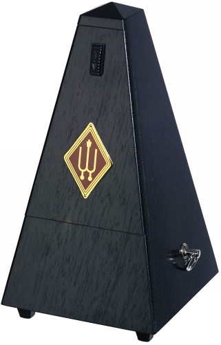 Descriptif : La gamme des Métronome System Mälzel représente sans conteste ce qui se fait de mieux en matière de Métronome mécanique.' Sa forme pyramidale peut d'ailleurs représenter à elle seule l'objet Métronome.' Doté d'une mécanique d'une grande précision, cet outil en sera un pour la vie ! Sa robustesse n'est plus à prouver.' La gamme est la plus large de la marque, chaque métronome proposant une version sans ou avec sonnerie. Vous trouverez obligatoirement votre choix de finition qui s'ajustera à la couleur ou matière de votre instrument.' ' Caractéristiques :' Boîte en Bois' Ajustable de 40 à 208 battements par minute.' Sans Sonnerie.' Couleur Noir Finition Satiné.