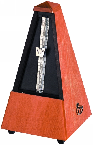 Descriptif : La gamme des Métronome System Mälzel représente sans conteste ce qui se fait de mieux en matière de Métronome mécanique.' Sa forme pyramidale peut d'ailleurs représenter à elle seule l'objet Métronome.' Doté d'une mécanique d'une grande précision, cet outil en sera un pour la vie ! Sa robustesse n'est plus à prouver.' La gamme est la plus large de la marque, chaque métronome proposant une version sans ou avec sonnerie. Vous trouverez obligatoirement votre choix de finition qui s'ajustera à la couleur ou matière de votre instrument.' ' Caractéristiques :' Boîte en Bois' Ajustable de 40 à 208 battements par minute.' Sans Sonnerie.' Couleur Couleur Cerisier