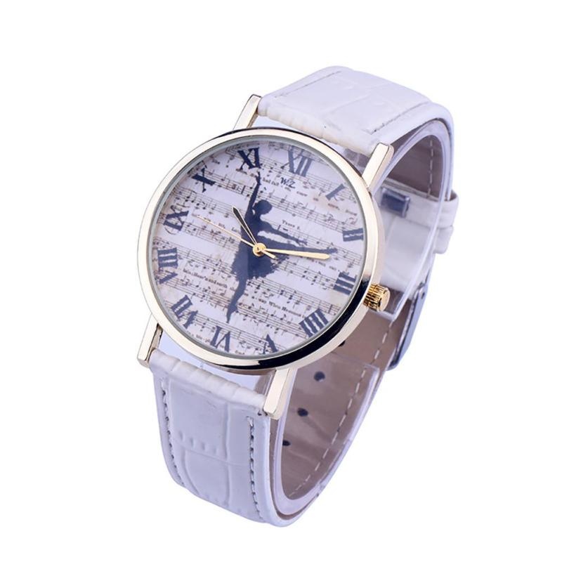 Descriptif : Voici une montre élégante, bracelet et fond blanc, danseuse sur un fond de partition. ' ' Diamètre : 3,5 cm ' Bracelet : 23 cm