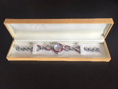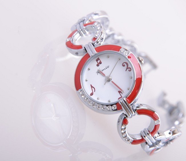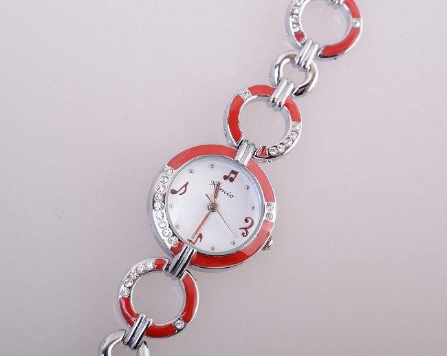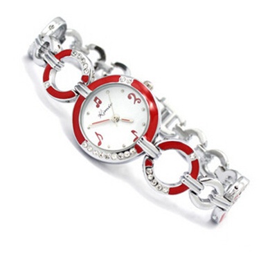 Descriptif : Discrète, féminine et élégante, cette montre au bracelet métal argent avec incrustations Rouges conviendra pour toutes vos sorties musicales.'