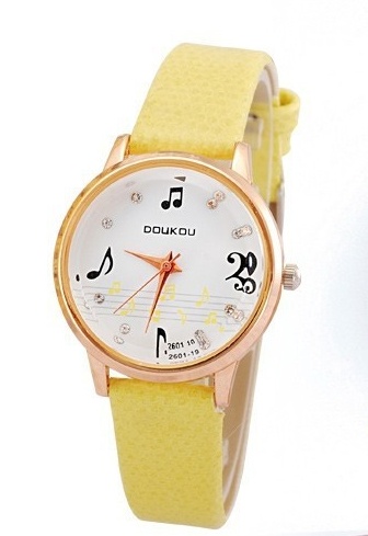 Descriptif : Montre fine et élégante, de petite taille qui conviendra aux poignets féminins.'' Cadran Blanc, bracelet jaune.'' '' Longueur Bracelet : 19,50 cm. '' Diamètre du Cadran : 3 cm