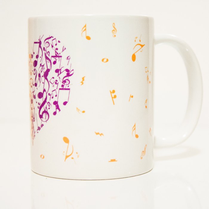 Descriptif : Mug au design musical original : des notes de musique composent un coeur. Bonne idée de cadeau pour tout ceux qui aiment la musique, qui la pratique ou qui l'écoute...et bien sûr, pour tout ceux qui s'aiment.' ' Ce mug a été spécialement conçu pour note4piano.com et est en vente exclusivement sur notre site.'