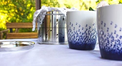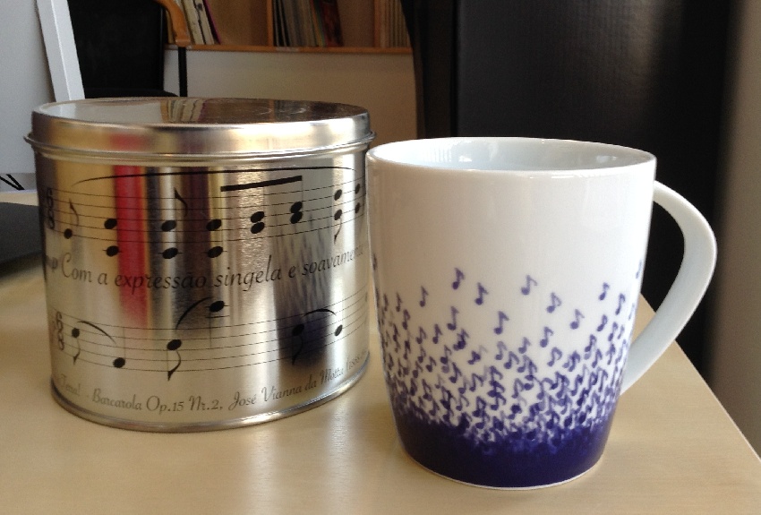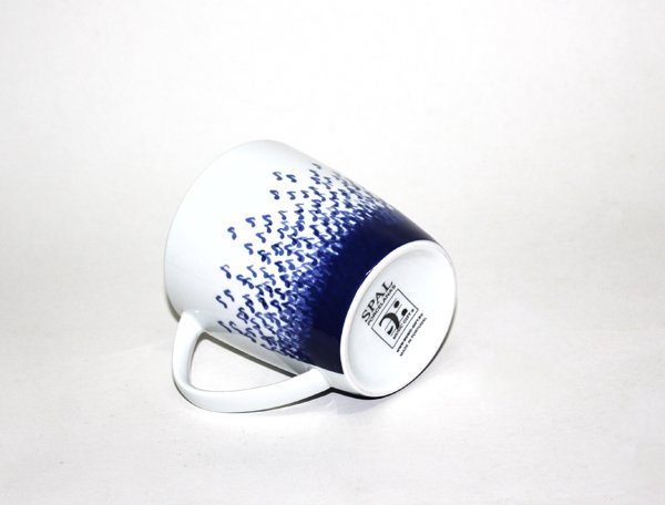 Descriptif : The Water Music Mug in a Tin makes the perfect gift!' ' In fine porcelaine and printing in a cobalt blue. The tin is prepared to store food.' ' Mug: machine washable and microwavable.' ' mug: Ø 9 x10 cm (height) 40 cl' ' tin: Ø 14 x12 cm (height)