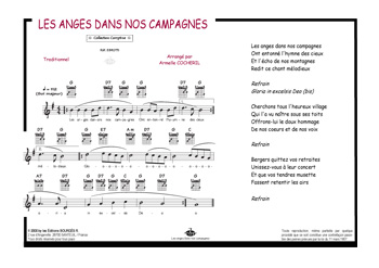 Descriptif : Chaque feuillet propose une partition piano isolée avec doigtés et nuances, et une partition sous forme de grille contenant la partie chant, paroles, accords, tablatures guitare.
