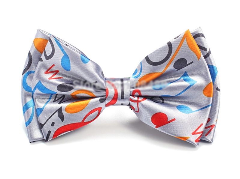[Bow Tie - Mixed Multicolored Music Notes Grey]