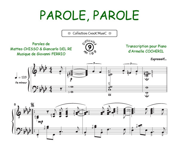 Descriptif : Cette partition est issue de la collection CrocK'MusiC constituée de transcriptions de chansons françaises pour le Piano, acompagnées de leurs paroles.