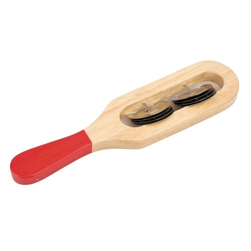 Descriptif : Cette petite percussion à main comprend 8 cymbalettes montées sur un manche en bois. ' ' C'est un instrument de musique de la famille des idiophones, que l'on secoue pour obtenir un son léger et cristallin et pour marquer le rythme.' ' L. 22,5 cm