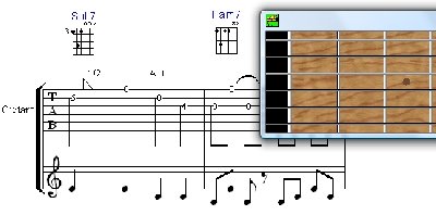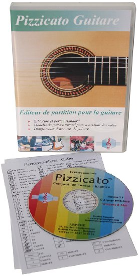 Descriptif : Pizzicato Guitare contient tous les outils pour l’écriture de partitions pour guitare, banjo, basse, ...