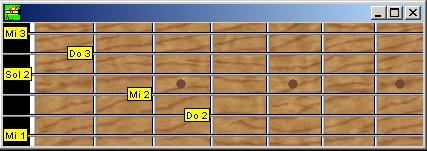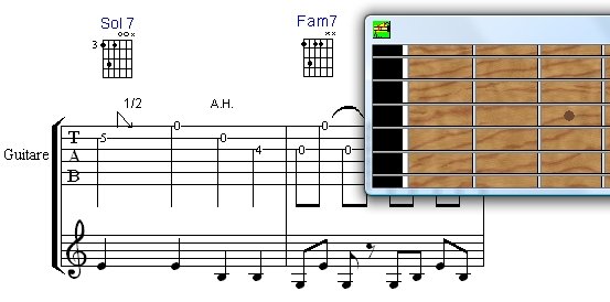 Introduisez les notes en cliquant sur la fenêtre du manche de guitare, tout en visualisant le nom des notes.
