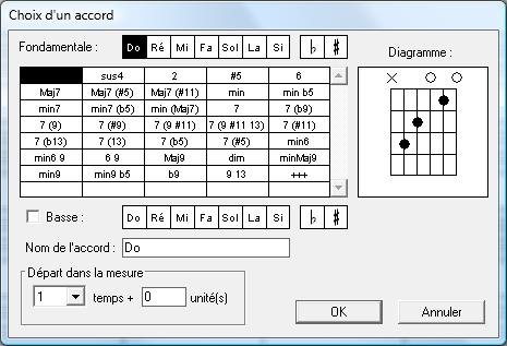 Une librairie complète de diagrammes d’accords est disponible et vous pouvez y ajouter les vôtres.
