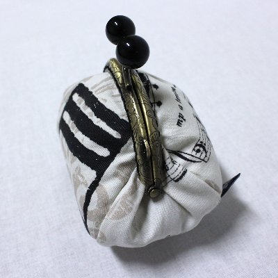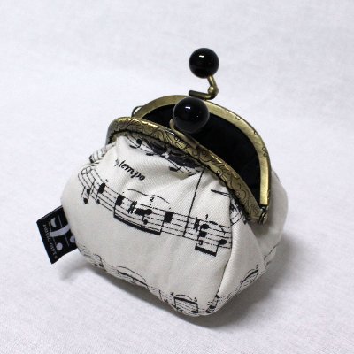 Un petit portefeuille en tissu aux motifs musicaux. Doublure intérieure.''
