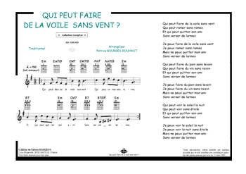 Descriptif : Chaque feuillet propose une partition piano isolée avec doigtés et nuances, et une partition sous forme de grille contenant la partie chant, paroles, accords, tablatures guitare.
