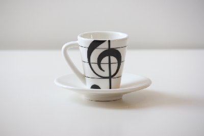Descriptif : Un service de 3 Tasses à café `made in Portugal`. Original, il propose les mootifs des 3 clés de la musique. Fabrication et finition parfaites.'' '' Dimensions : '' Soucoupe : Diamètre 12 cm'' Tasse : hauteur 7 cm / Diamètre supèrieur 6,5 cm / Diamètre cul de tasse 4 cm