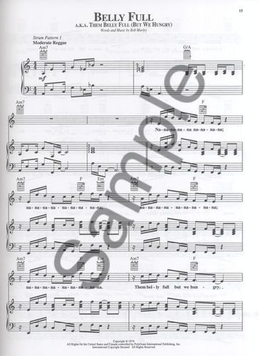 Descriptif : Un magnifique hommage au roi du reggae Bob Marley. Retrouvez dans ce recueil de partitions pour Piano, Chant et Guitare 34 des meilleures titres de Bob, 8 pages de magnifiques photos couleurs, une préface de la fille de Bob Marley, et les paroles ccomplètes sur pages séparées. Sont inclus les hits Could You Be Loved, Exodus, Get Up Stand Up, I Shot The Sheriff, Jammin', Natural Mystic, No Woman No Cry, Please Don't Rock My Boat, Redemption Song, et bien d'autres ! Indispensable pour tout fan de reggae ou de Bob !
