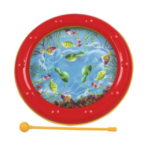 Descriptif : Ce mini-tambourin des mers fera naviguer les petits dans le bruit des vagues ! ' ' Il permet un double usage : il fait office de tambourin, lorsqu'on le frappe à l'aide de sa petite baguette; mais ce qui fait son originalité, ce sont les billes colorées qu'il contient et qui produisent un son évoquant le roulis des vagues, lorsqu'on les fait rouler à la façon de grains de sable dans un tamis.' ' ' Norme CE' Couleurs non contractuelles' ' Livré avec une mailloche.' ø 25 cm - Peau synthétique