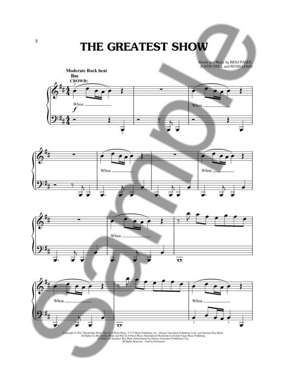 Descriptif : The Greatest Showman célèbre la naissance du show-business et l’émerveillement que l’on éprouve lorsque les rêves deviennent réalité. Inspirée par l’ambition et l’imagination de P.T Barnum, voici l’histoire d’un visionnaire parti de rien qui a créé un spectacle devenu un phénomène planétaire. ' ' Ce recueil propose 9 titres sous la forme d'arrangements pour Piano Facile dont le Golden Globe-winning `This is me`.
