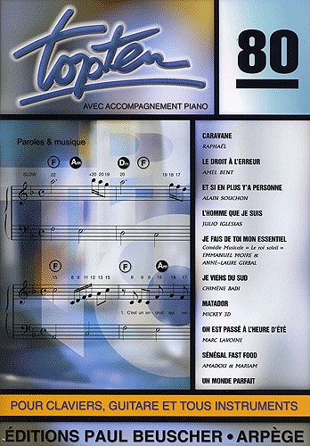 Descriptif : Vous trouverez pour chaque titre sélectionné parmis les meilleurs singles du moment : - La page `dictionnaire d'accords` de la chanson - Le texte complet façon `Je chante` avec les accords au-dessus des paroles - Une version Piano solo Intermédiaire (3/4 ans de piano)