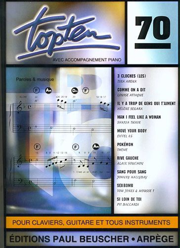 Descriptif : Vous trouverez pour chaque titre sélectionné parmis les meilleurs singles du moment : - La page `dictionnaire d'accords` de la chanson - Le texte complet façon `Je chante` avec les accords au-dessus des paroles - Une version Piano solo Intermédiaire (3/4 ans de piano)