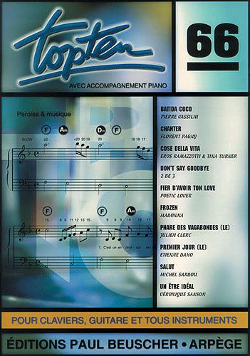 Descriptif : Vous trouverez pour chaque titre sélectionné parmis les meilleurs singles du moment : - La page `dictionnaire d'accords` de la chanson - Le texte complet façon `Je chante` avec les accords au-dessus des paroles - Une version Piano solo Intermédiaire (3/4 ans de piano)