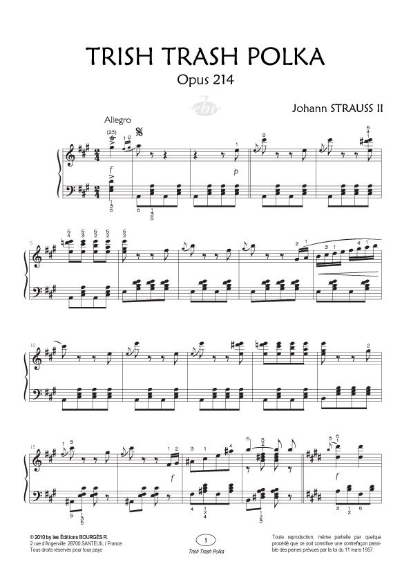 Strauss, Johann Jr. : Trish Trash Polka Opus 214 (Collection Anacrouse)
